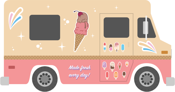 Designed vehicle wraps for a classic-styled ice cream truck and locksmith van in the commercial.