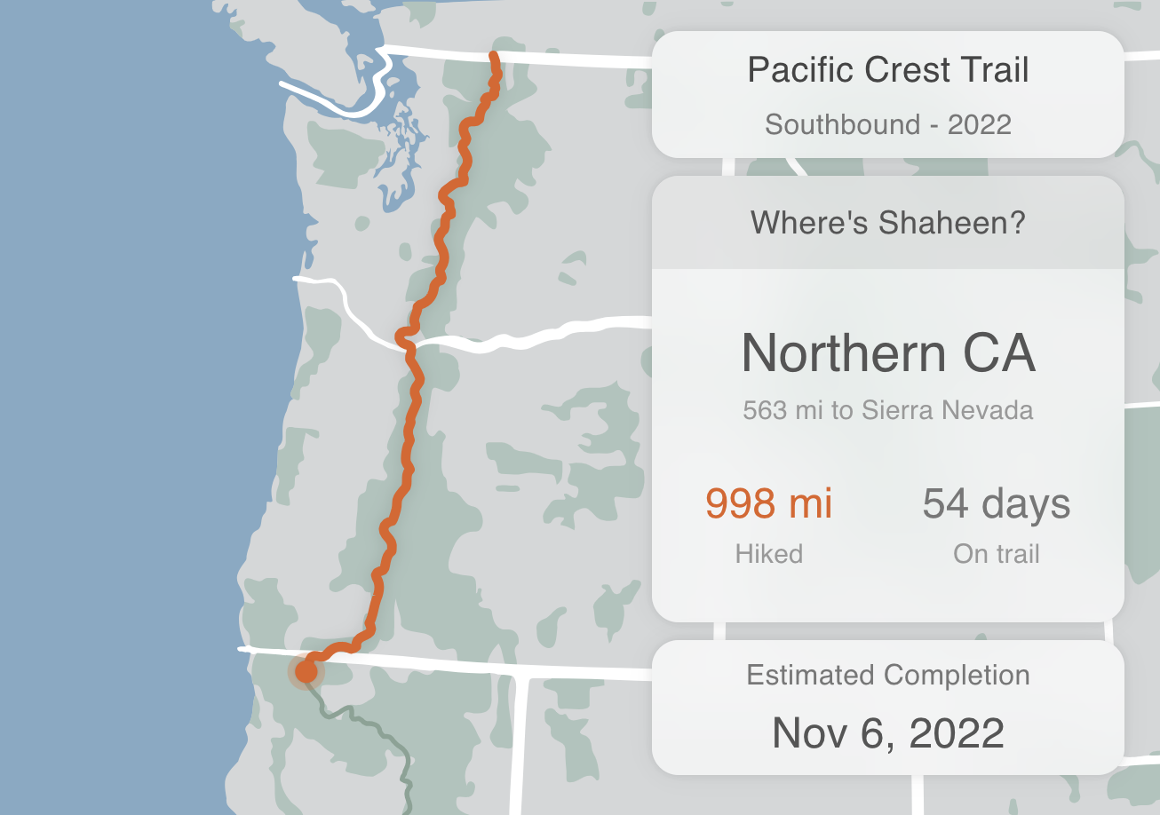 Showed my brothers progress on the Pacific Crest Trail, and estimated his completion date.